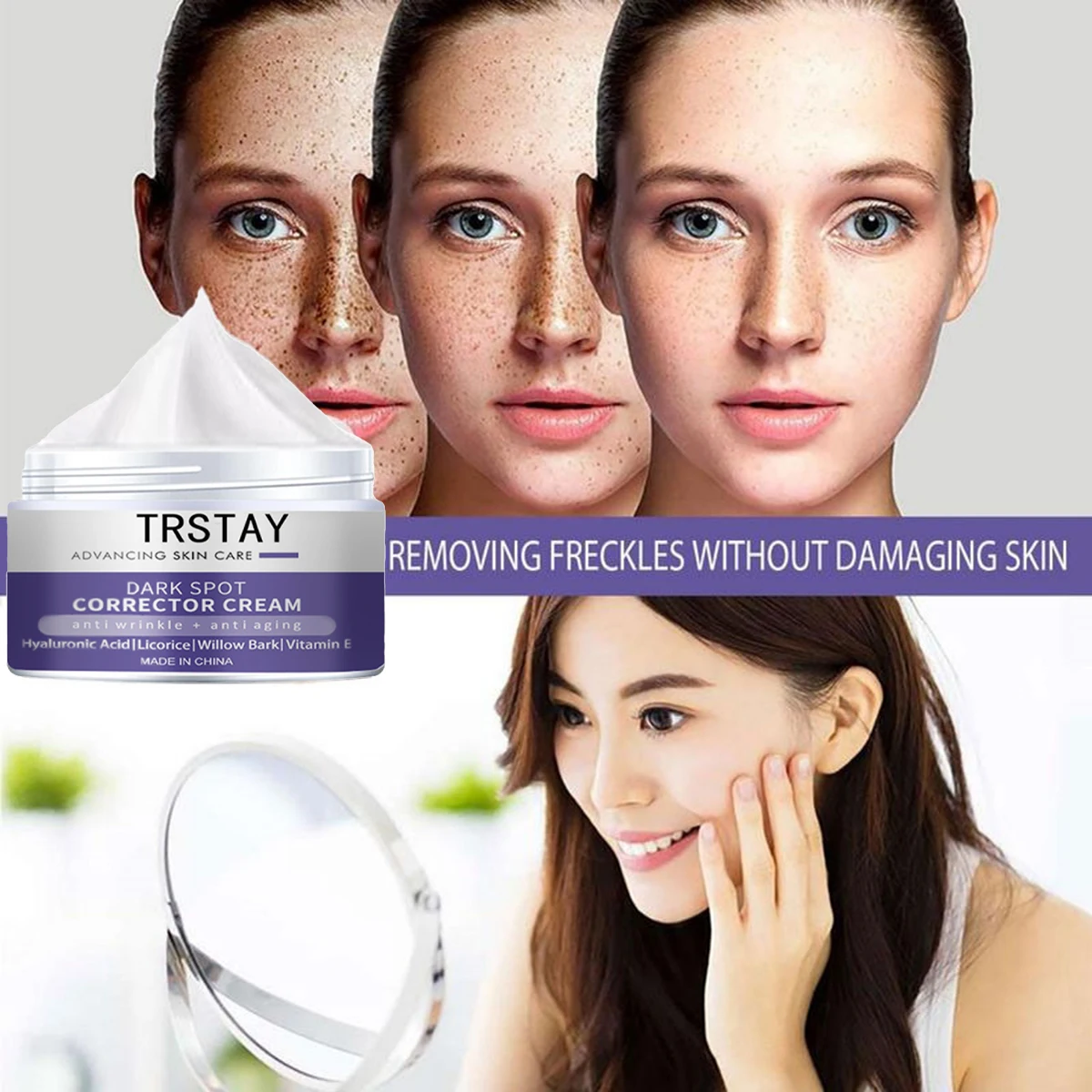 Unlock your skin's potential! ๐ What is it - Our Anti-Aging Freckle Cream is a nourishing skincare solution that targets freckles, pores, and wrinkles while deeply moisturizing your skin for a radiant glow. Infused with premium ingredients like collagen and hyaluronic acid, this lightweight cream is suitable for all skin types and delivers exceptional results.๐ Why you need it - - Fades freckles and reduces dark spots for a clearer complexion.- Minimizes the appearance of pores for smoother skin.- Provides intense hydration to combat dryness and aging.- Promotes skin elasticity and firmness, fighting wrinkles effectively.โจ Why you love it - - Fast-absorbing formula leaves no greasy residue, perfect for daily wear.- Enriched with nourishing argan oil and vitamin A to revitalize your skin.- Pleasant fragrance enhances your self-care routine, making it a treat for your senses.๐งด How to use it - Apply a small amount to clean, dry skin, gently massaging until fully absorbed. Use daily for best results, both morning and night. Perfect under makeup or as a night cream.โ